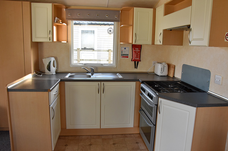 35ft x 12ft, three bedroom caravan with double bedroom and two twin rooms, shower room with wash basin and W.C facilities. Foldaway bed in living area, heating, pet friendly.